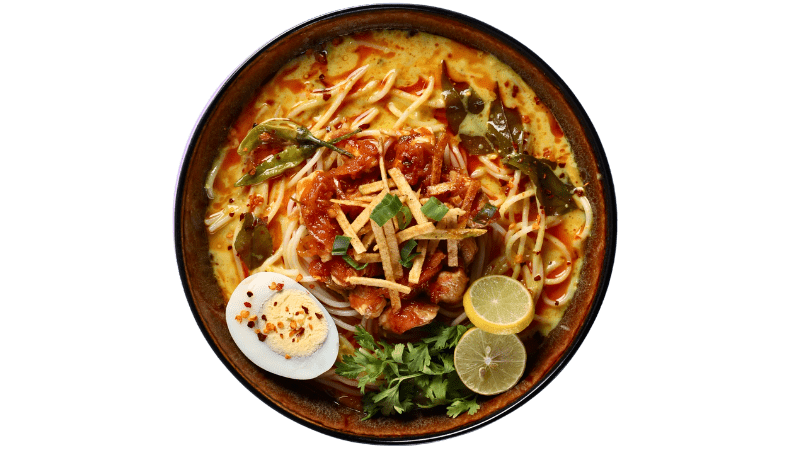 Origin story: Based on Burmese ohn no khao swè, coconut-curried noodles came to Karachi with families who had lived in Burma/Myanmar and migrated mid-20th century. Desi khow suey is a cousin, not a clone.