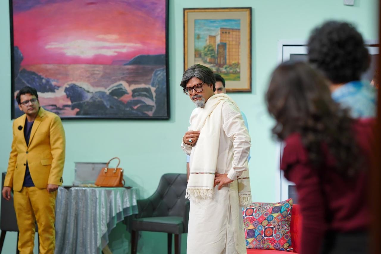 The play’s length isn’t an issue—it’s thoroughly entertaining—but the late entry of Azeem Bachchan (also played by Yasir Hussain) is. While he energises both the audience and his co-stars as a Pakistani version of Amitabh Bachchan, his appearance comes a bit too late. Gulrukh Ali Khan, who plays Sherry’s girlfriend, has limited material to work with; a few more dialogues could have added better representation for the fairer sex.