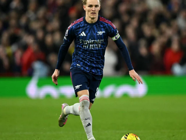 Captain Martin Odegaard and Arsenal were feeling a lot more upbeat about their title charge thanks to Aston Villa’s surprise 1-0 home loss against Everton. Photo: AFP